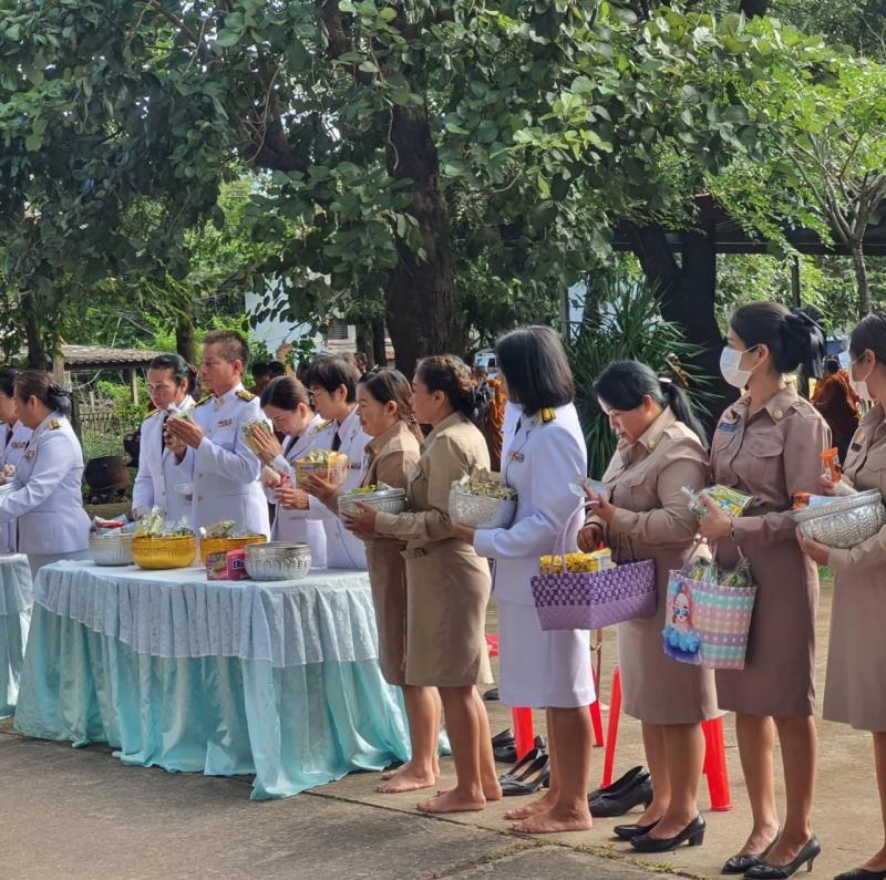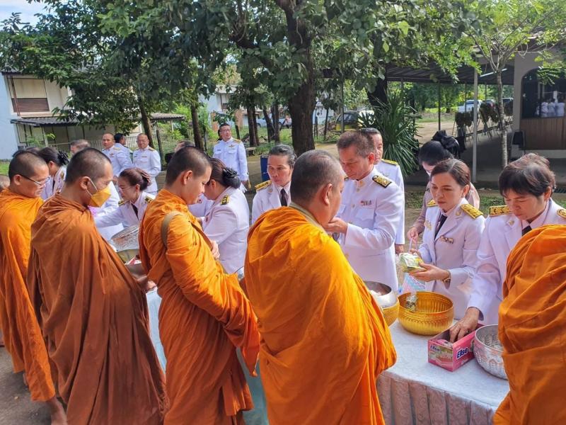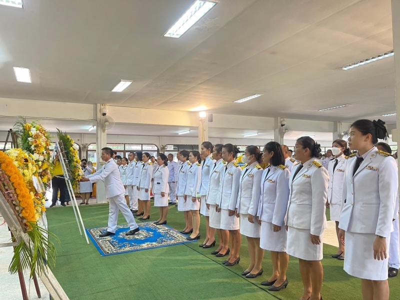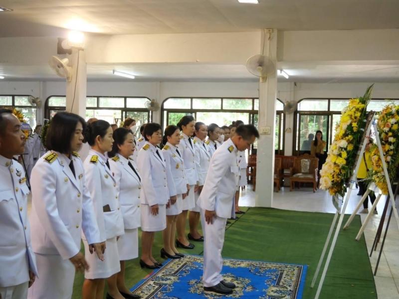 ร่วมพิธีสวดพระพุทธมนต์ ทำบุญตักบาตรถวายพระราชกุศล และวางพวงมาลาถวายความเคารพ