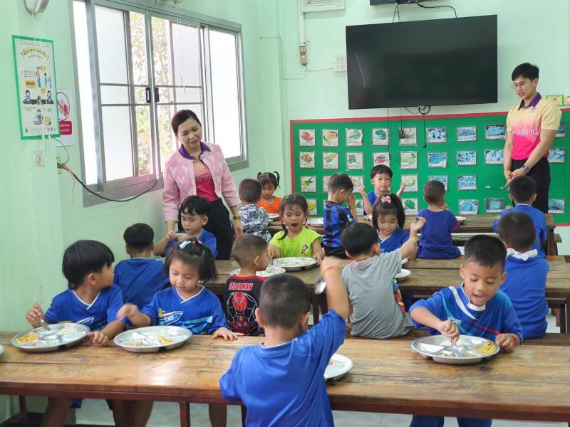 คณะกรรมการลงพื้นที่ติดตาม ตรวจสอบและประเมินผลการดำเนินงานโครงการอาหารกลางวัน ณ ศพด.ดงบังใต้ สังกัด อบต.ดอนมดแดง อ.ดอนมดแดง จ.อุบลราชธานี